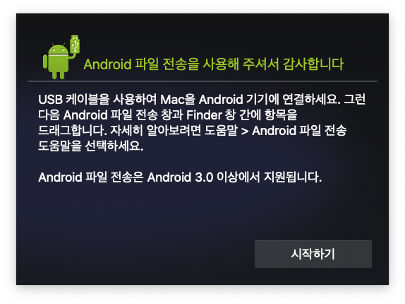위 사이트에서 Andoid File Transfer 앱을 다운로드 받습니다.