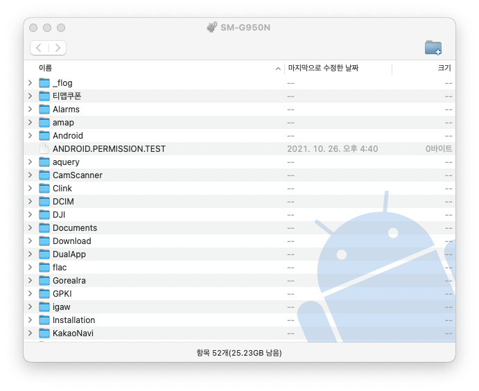 응용프로그램 > Android 파일 전송 > 더블 클릭