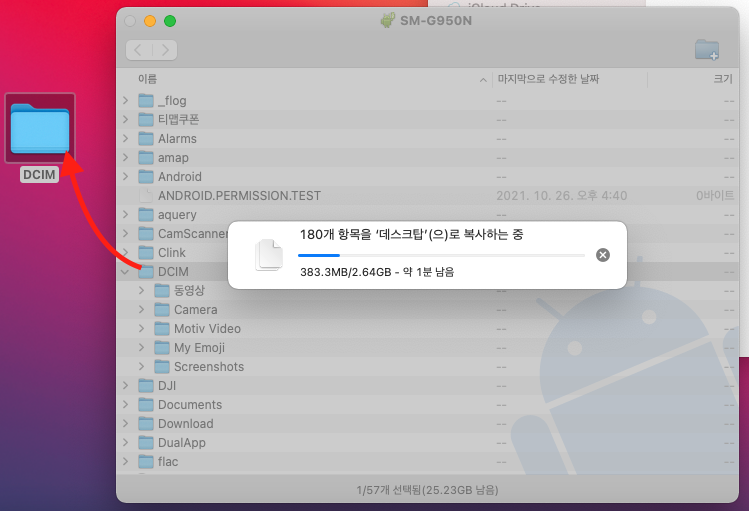 최종적으로 폰에 있는 파일을 맥 컴퓨터로 복사해서 사용하면 되겠습니다.