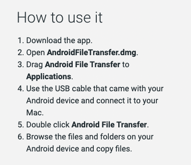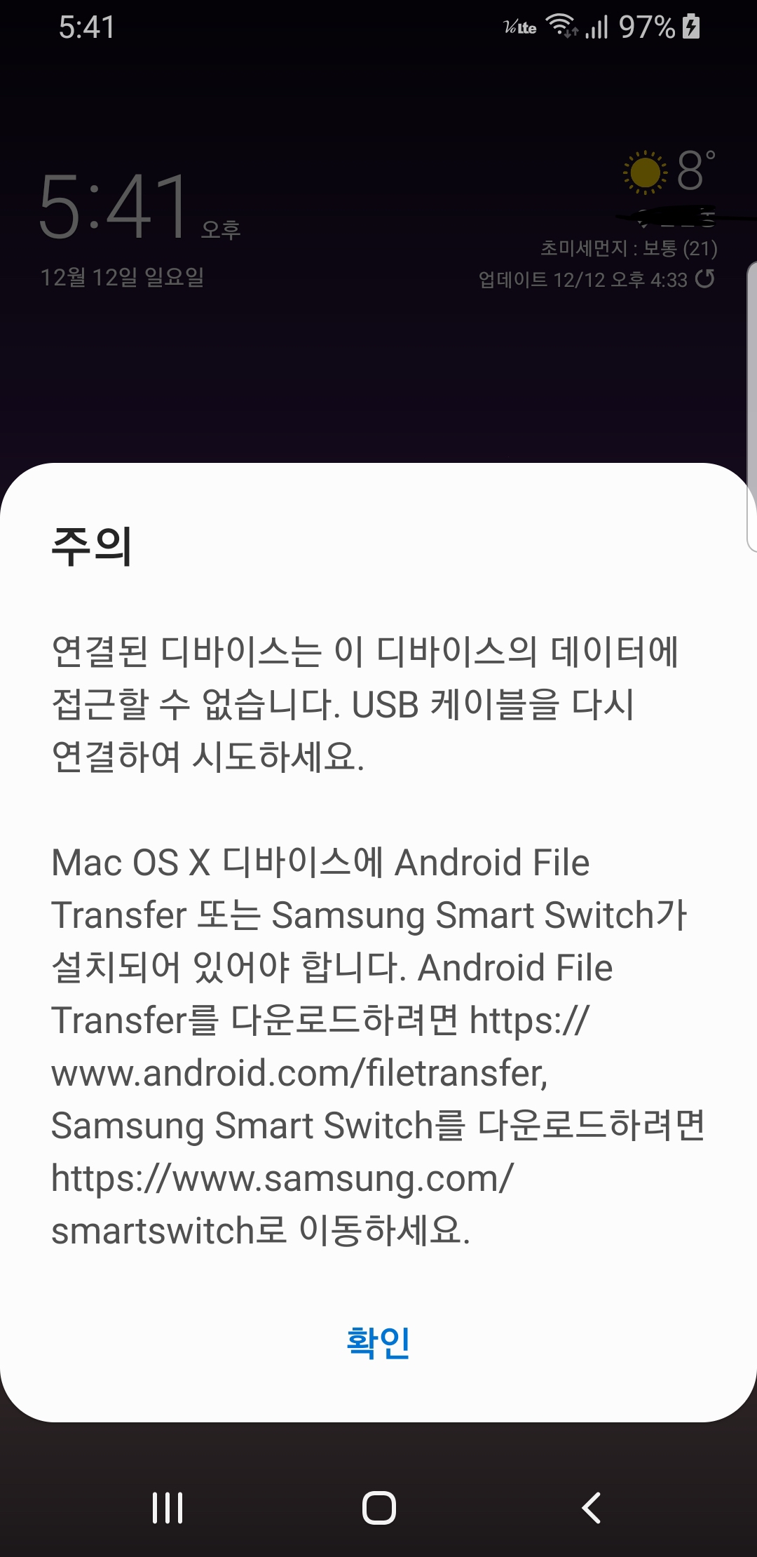 즉, Mac OS X 디바이스에 Android File Transfer 또는 Samsung Smart Switch 설치가 필요합니다.