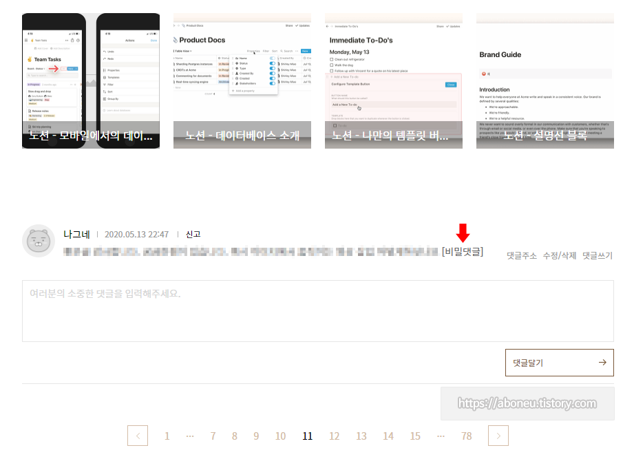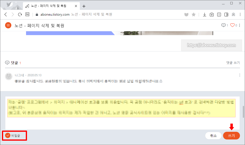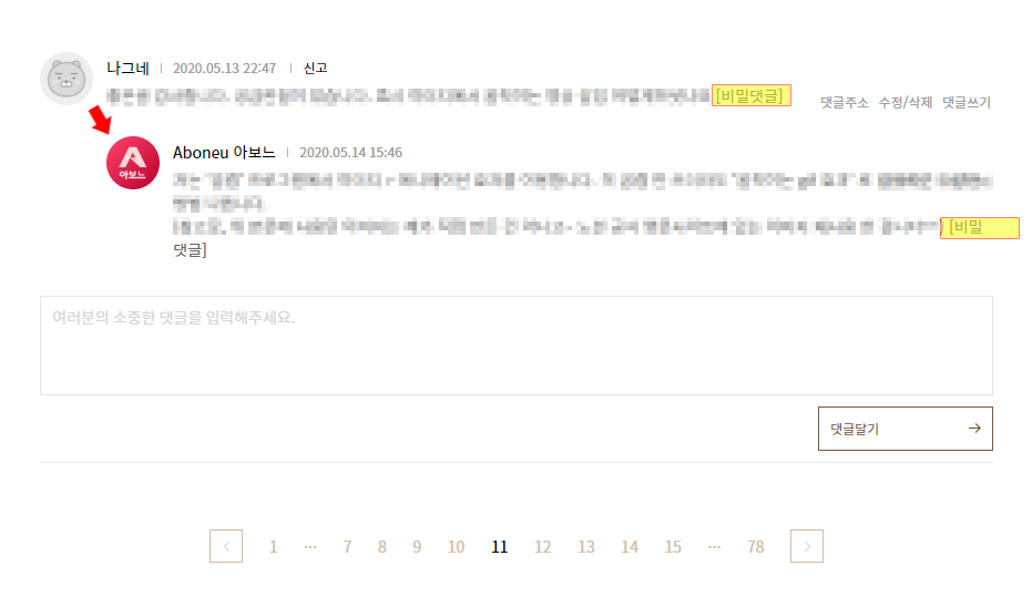 이제 PC화면으로 돌아가서 확인해 보면 비밀댓글에 대한 비밀답글이 작성된 것을 볼 수 있습니다^^