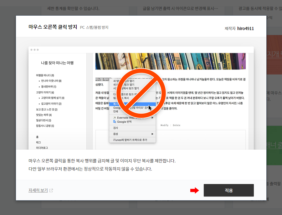 이제 내 티스토리 내에서 마우스 우클릭은 방지가 됩니다.