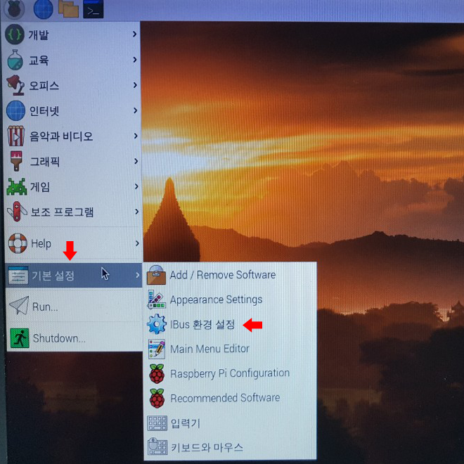 기본 설정 - IBus 환경 설정 을 클릭합니다.