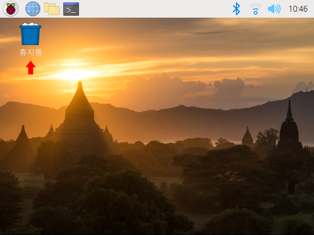 재부팅된 화면을 보면 휴지통 아이콘 아래 한글이 깨져서 나옵니다.