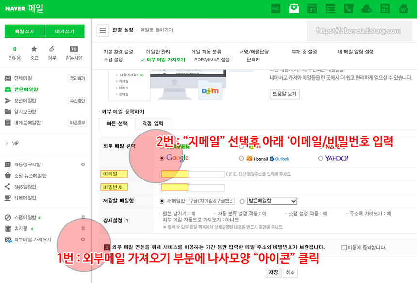 Naver 메일함에서 Gmail 외부메일 가져오는 법