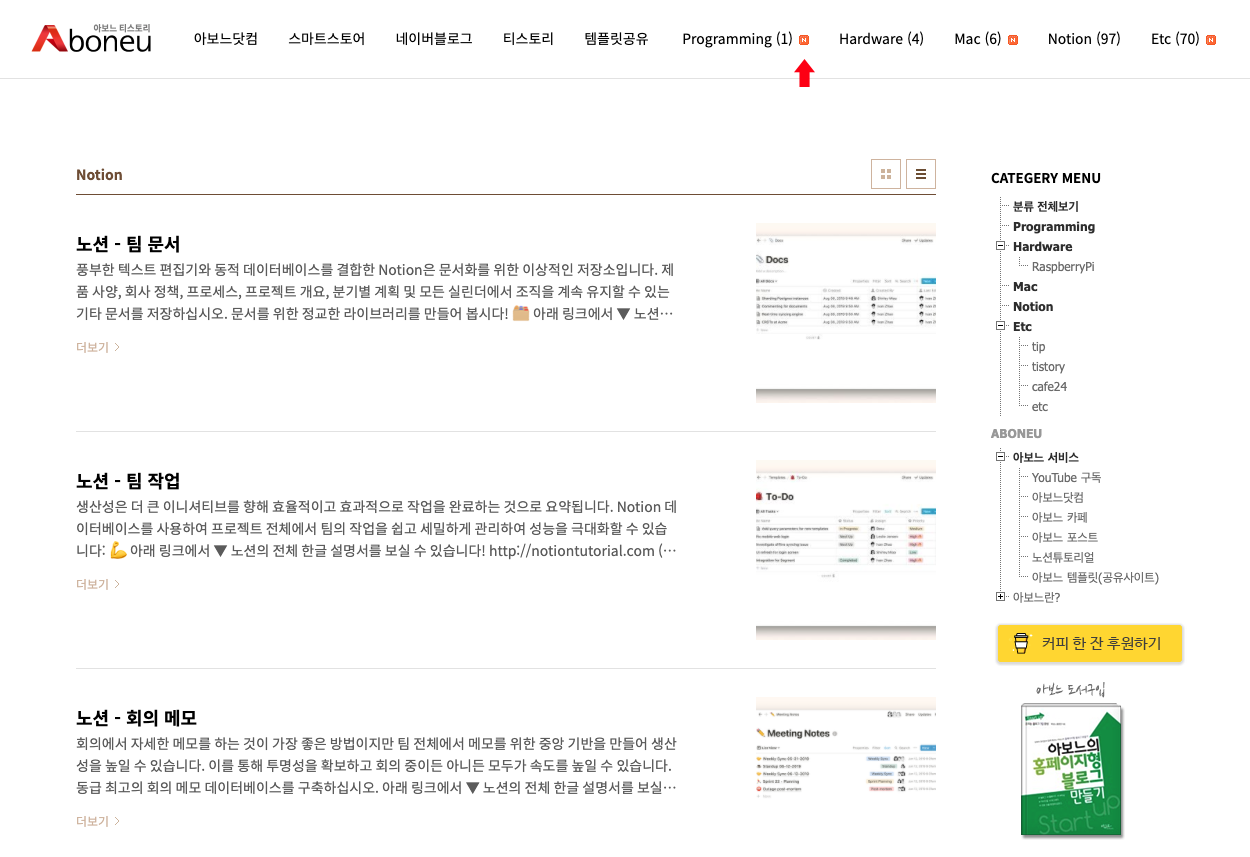 티스토리 카테고리에 글쓰기가 되면 새 글 표시 아이콘이 나타납니다.