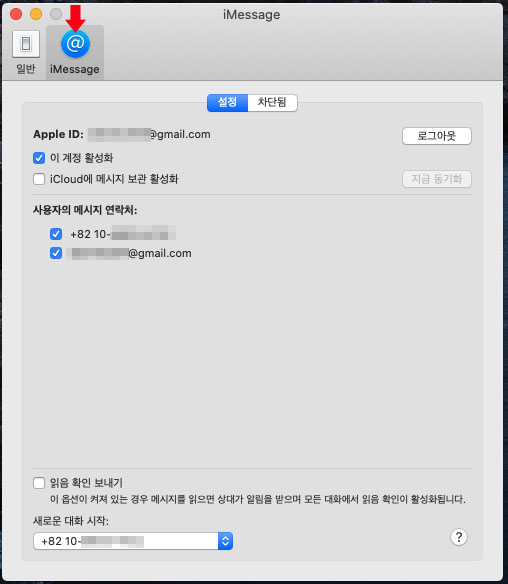 iMessage 상단 탭을 클릭해서 아래 정보들을 확인합니다.