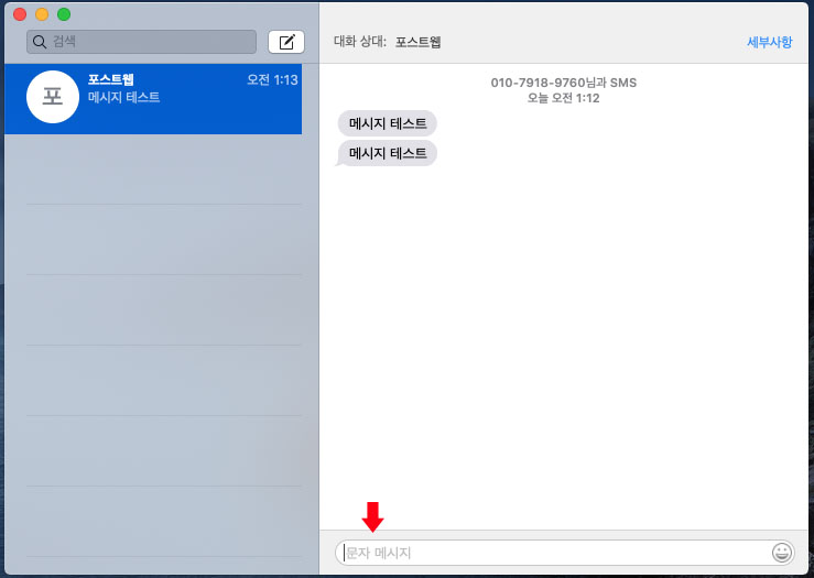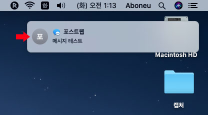 맥 기기에서 문자가 수신될 경우 우측 상단에 문자 알림창이 정상적으로 연동되어 보여지게 됩니다!