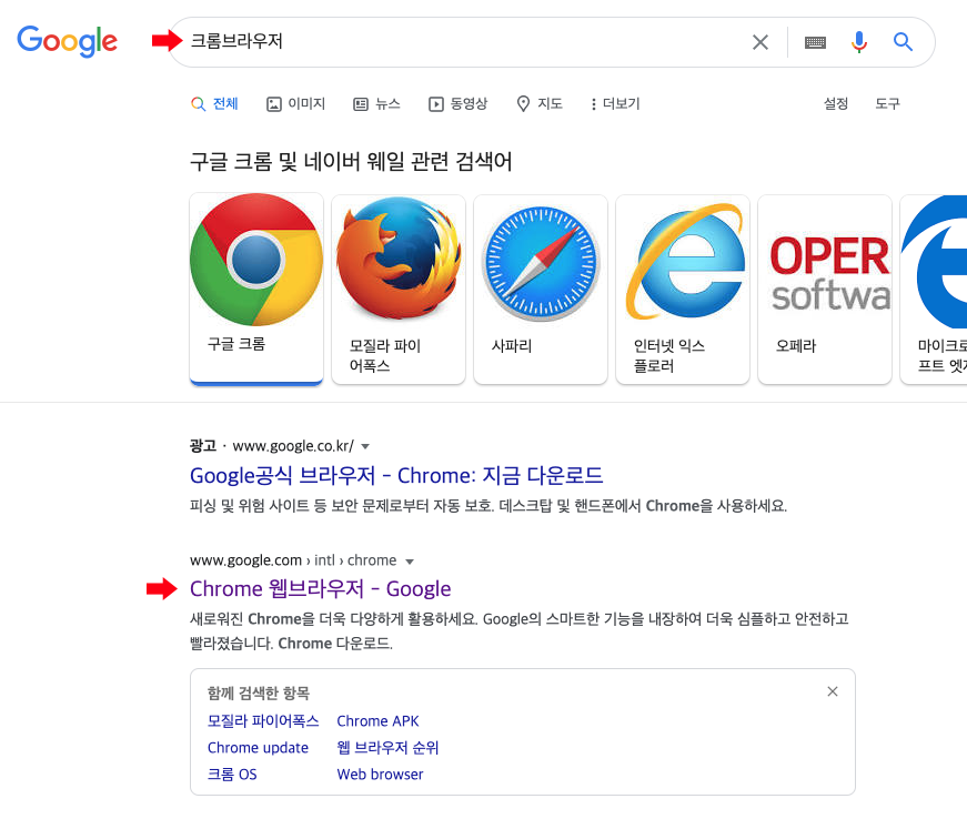 구글 사이트에서 '크롬브라우저' 로 검색해서