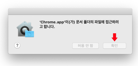 마지막으로 'Chrome.app'이 문서 폴더의 파일에 접근하려고 합니다. 에 '확인' 을 클릭하면 끝납니다!