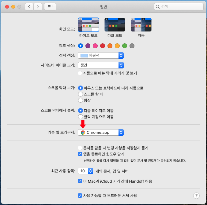 맥에 기본 브라우저는 사파리 브라우저로 되어 있습니다. 이를 크롬 브라우저로 변경하는 방법입니다.