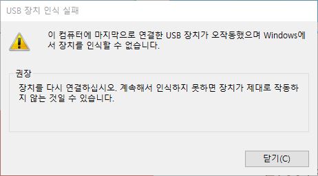 USB 장치 인식 실패
