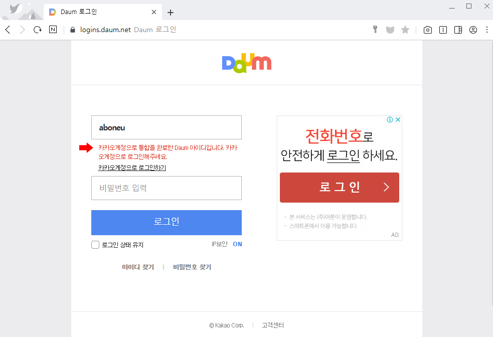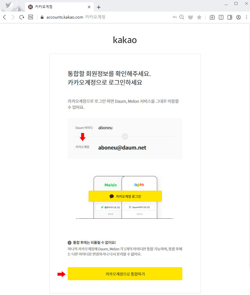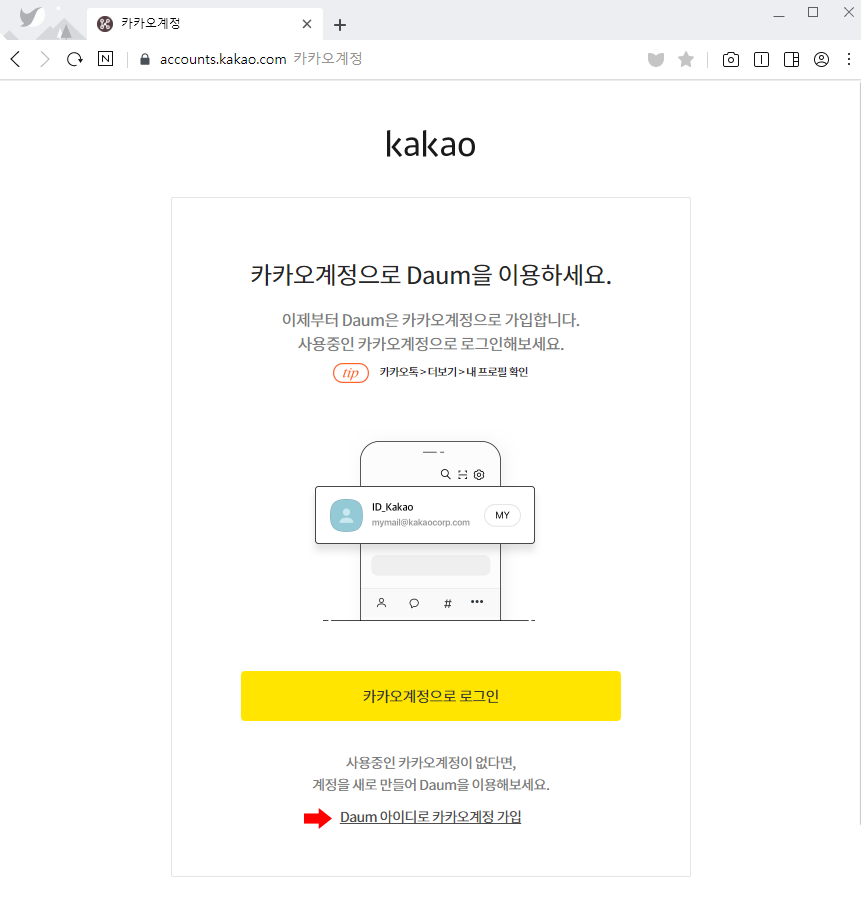 Daum 아이디가 → 카카오계정으로 소속되게 됩니다!