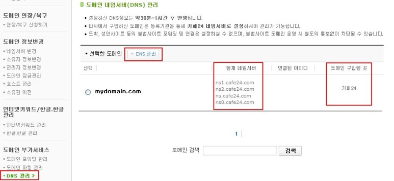[CAFE24 DNS관리 바로가기]