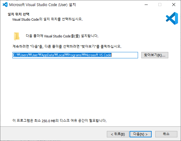 vscode를 윈도우에서 설치하는 방법입니다. 설치 경로를 참고할 수 있습니다.