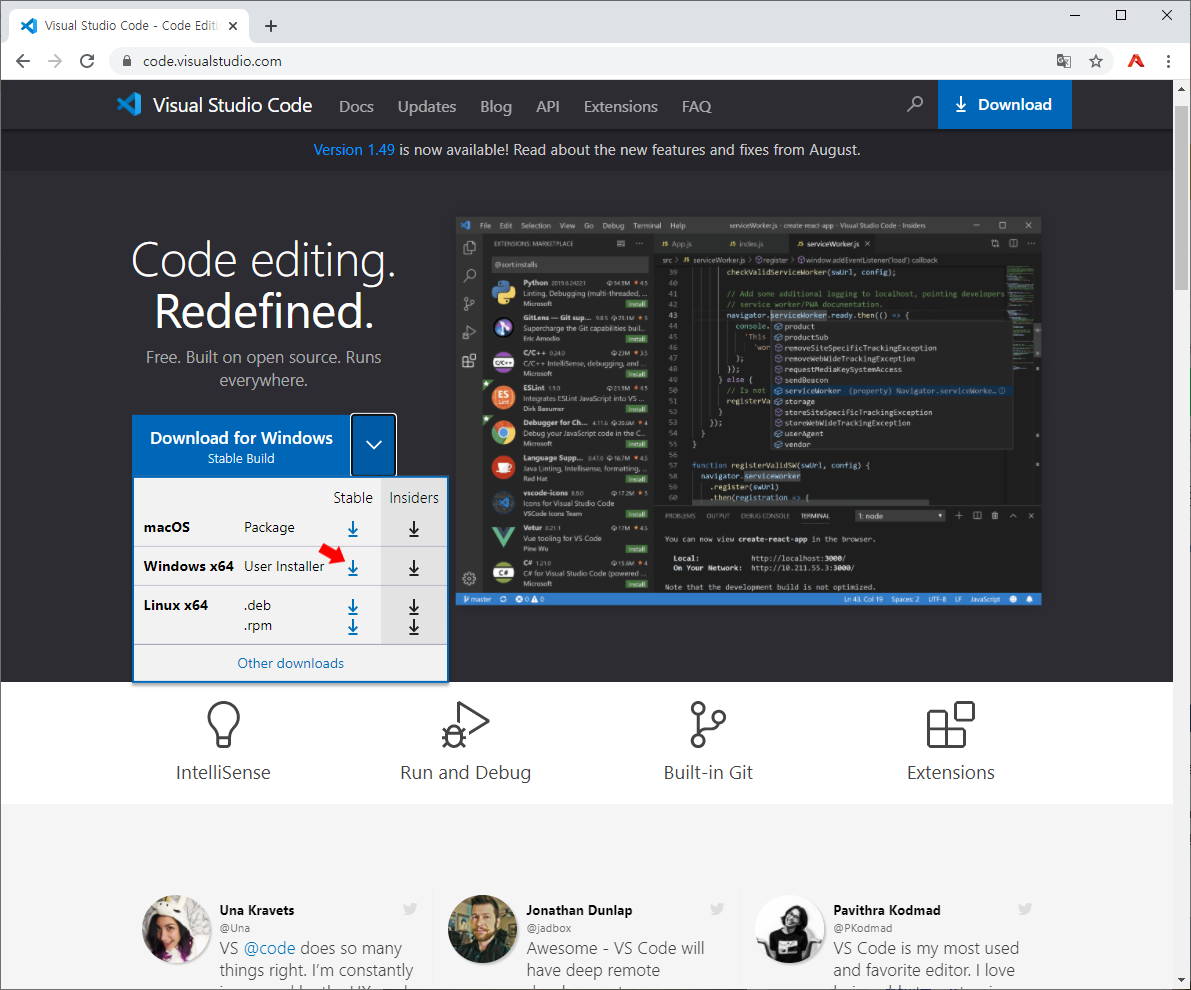 Visual Studio Code 공식 사이트에서 code.visualstudio.com