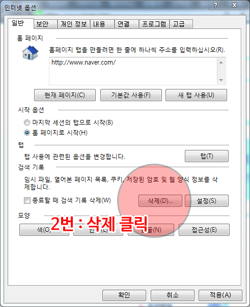 첫 번째, 익스플로러에서 "인터넷 쿠키 삭제" 방법