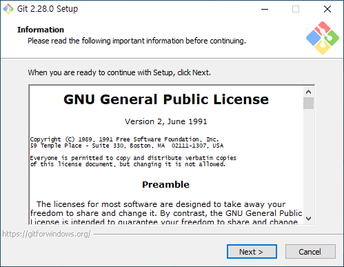 Git-2.28.0-64-bit.exe 파일을 실행합니다.