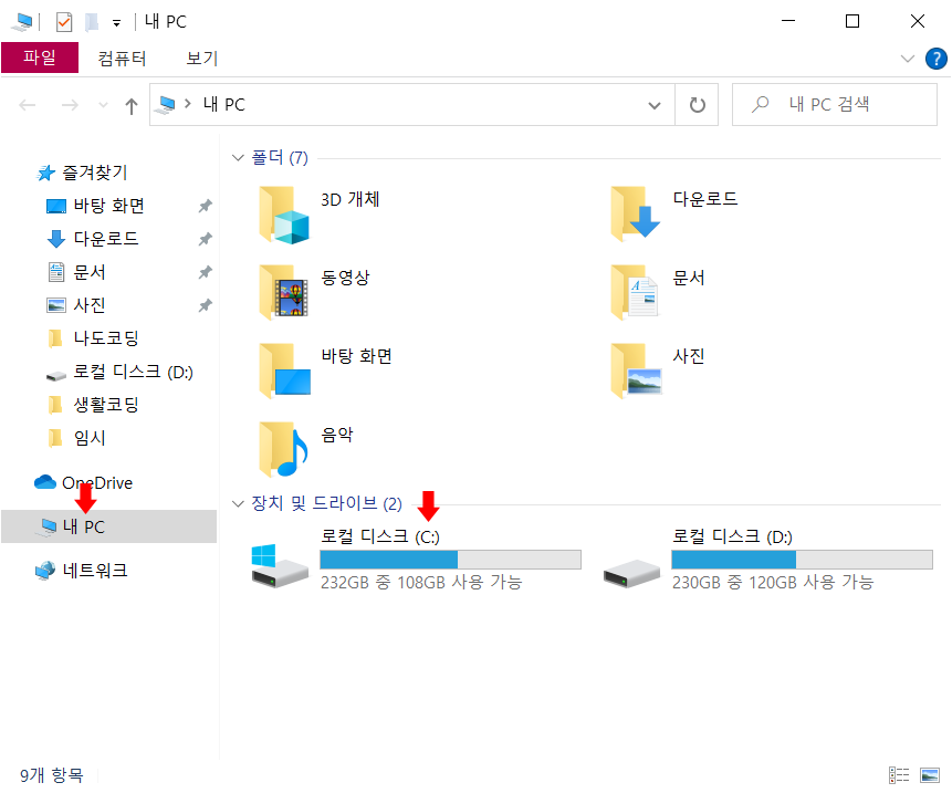 내 PC > C 폴더로 이동