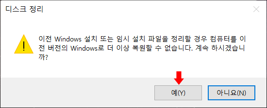 스크롤을 아래로 내린 후 > '이전 Windows 설치' 앞에 네모 체크 > 확인을 클릭합니다.