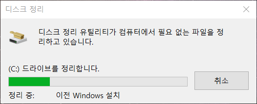 잠시 멈춘 듯 하다가, 곧 디스크 정리 창이 아래처럼 나타납니다.