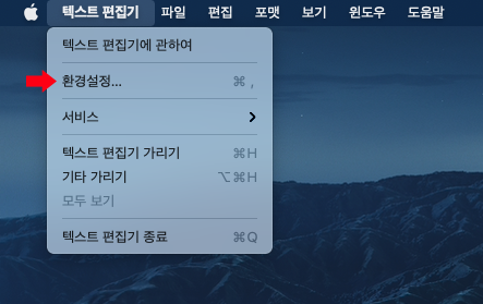 포맷 변경을 위해, 상단에 텍스트 편집기 > 환경설정 을 클릭합니다.