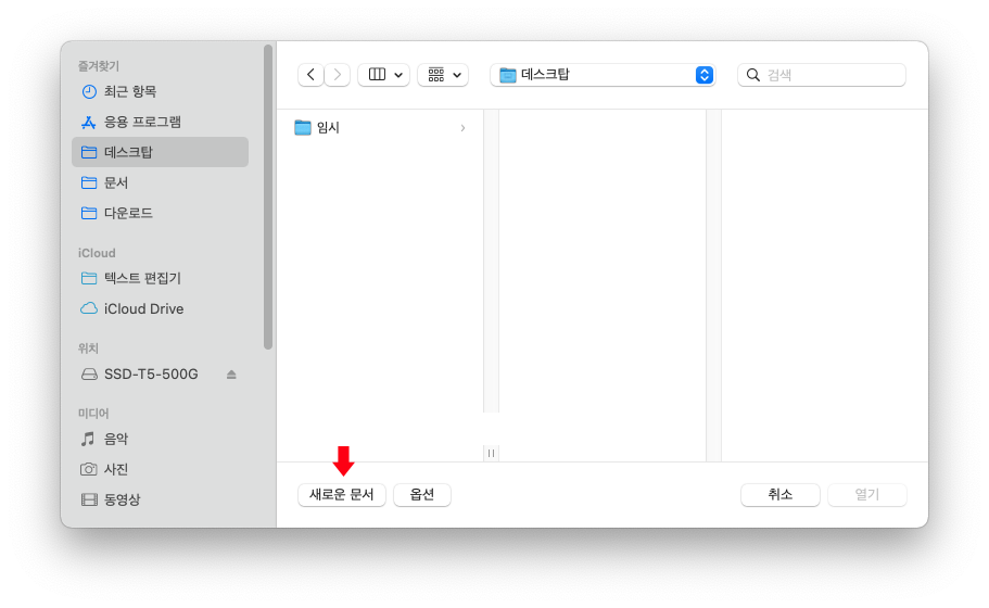 텍스트 편집기를 실행 후 > 새로운 문서를 엽니다.