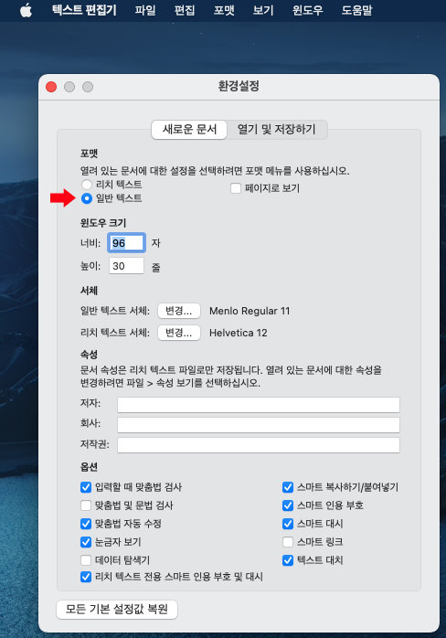 맥북 등에서 텍스트 편집기를 열기를 하면 기본적으로 리치 텍스트(rtf) 형태로 열립니다.
