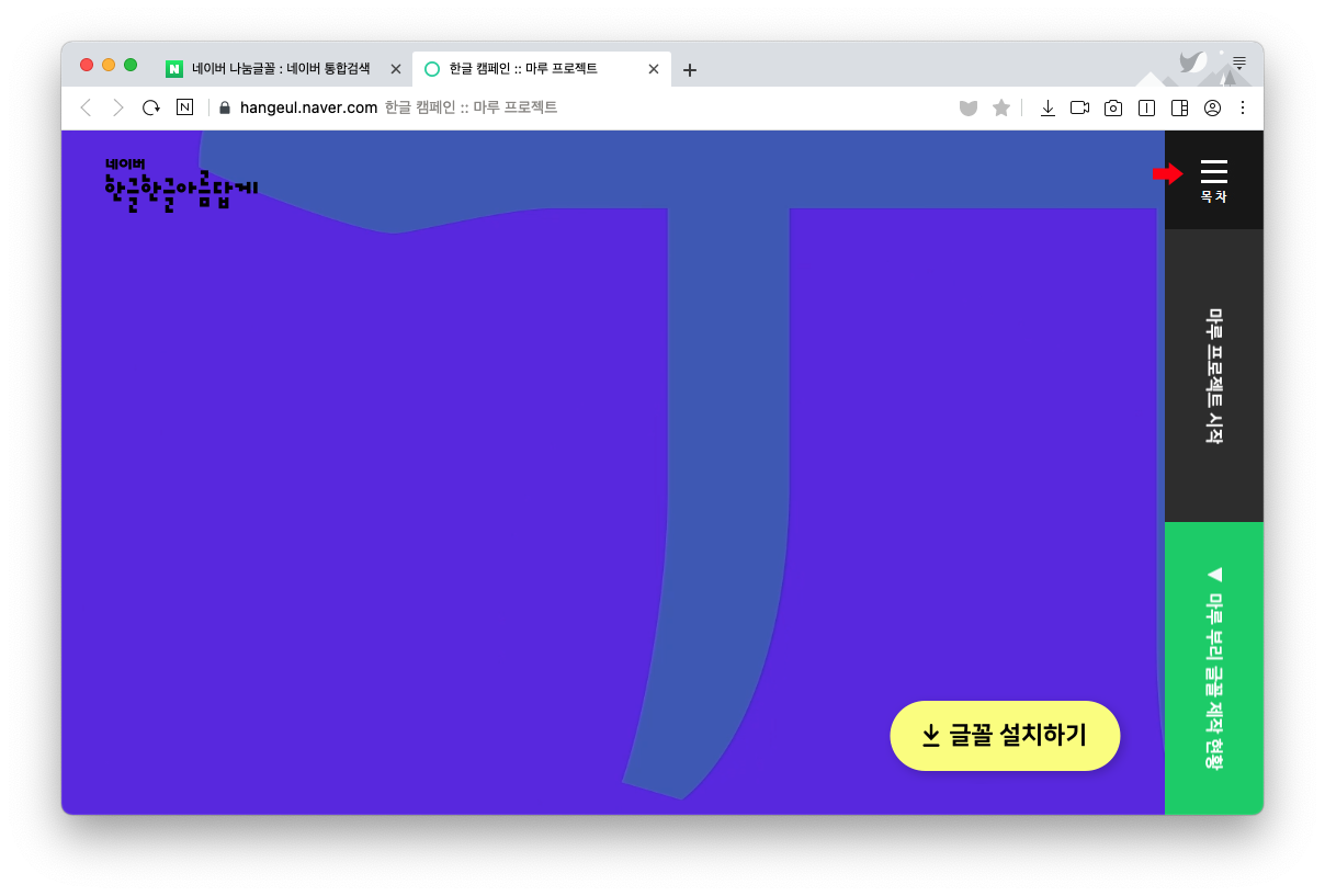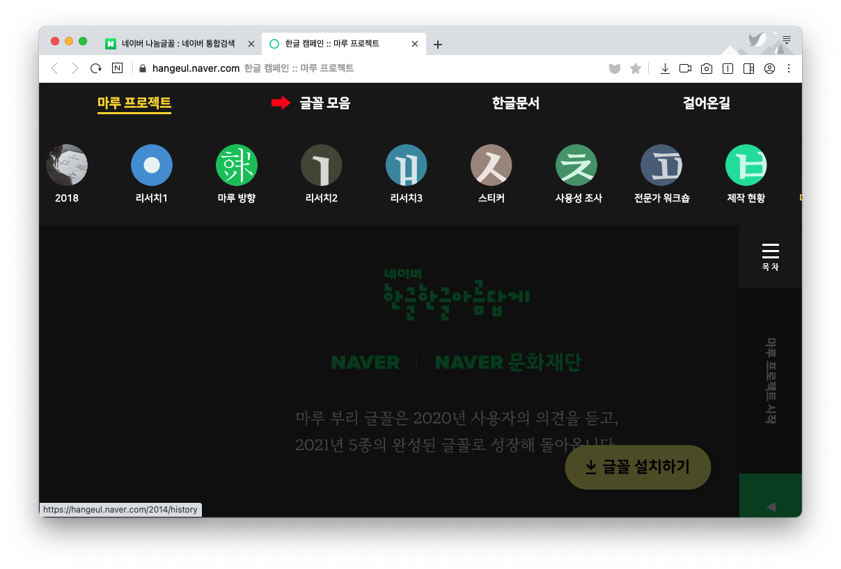 네이버에서 '네이버 나눔글꼴' 검색 후 > 네이버 한글한글 아름답게 캠페인 > 클릭