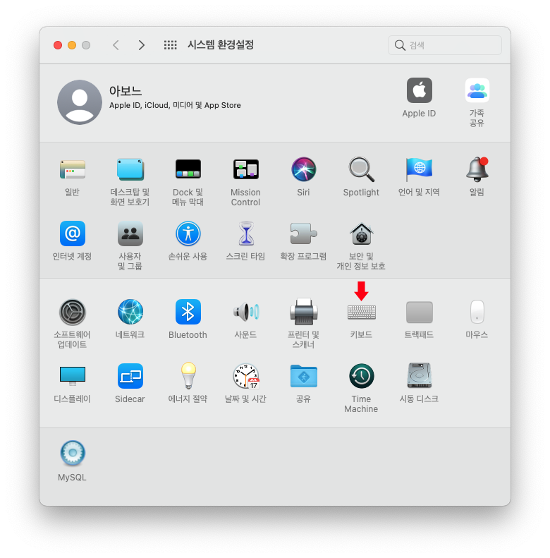 시스템 환경설정 > 키보드 클릭