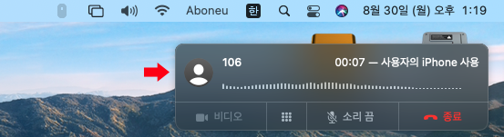 그럼, 맥 기기에서 iPhone을 사용해 전화를 걸고 있는 것을 볼 수 있습니다.