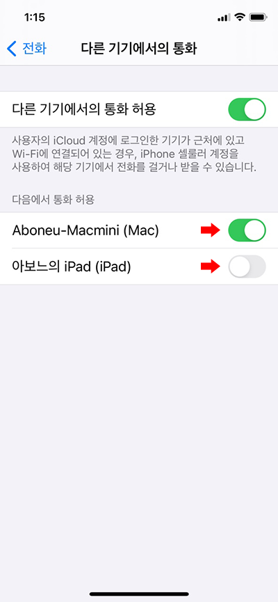 1. 아이폰에서는 설정에서 다른 기기에서도 통화 허용을 체크해주어야 합니다.