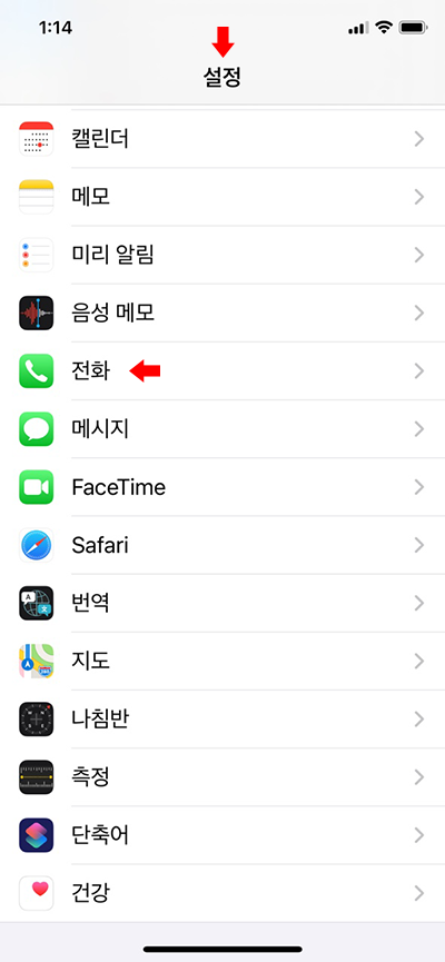 아이폰 > 설정 > 전화 클릭