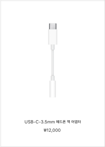 아래와 같은 애플 정품 USB-C-3.5mm 헤드폰 잭 어댑터를 12,000원에 구입해야 합니다.