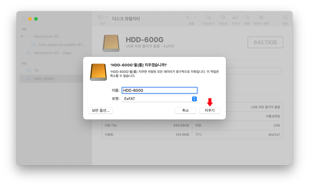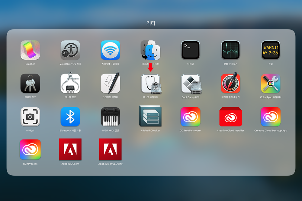 윈도우에서는 마우스 우클릭해서 포맷을 하면 되지만, 맥에서는 디스크 유틸리티 앱을 실행 후 포맷을 할 수 있습니다.