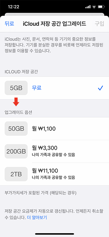 아이폰의 iCloud의 기본 무료 용량은 5G입니다. 사용하다 보면 용량이 부족해 업그레이드할 때가 있습니다.