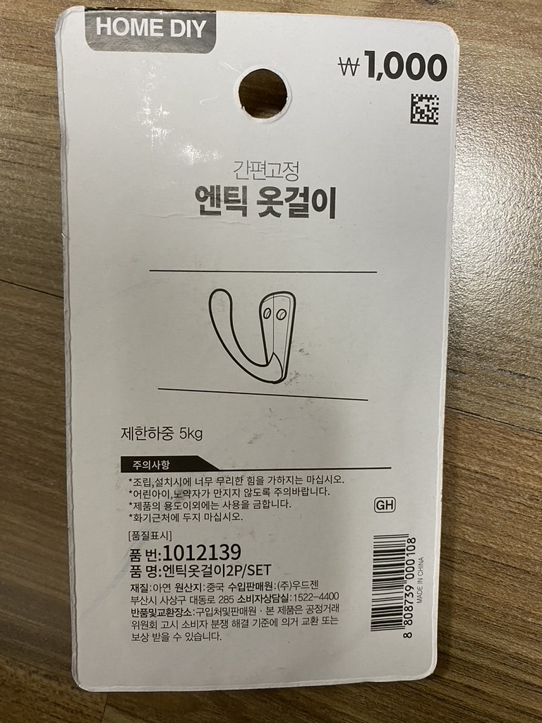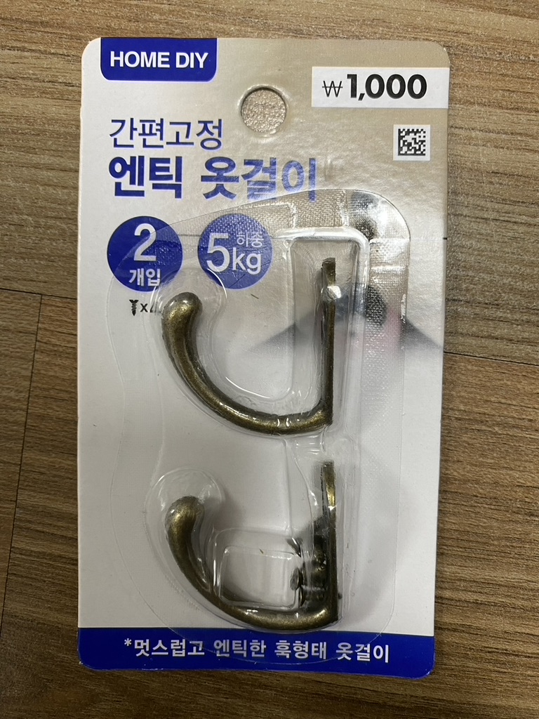 특징 : 겉으로 보기엔 쇠처럼 보이지만, 실제론 플라스틱 재질같음 (훅형태가 앞으로 길게 나와서 걸기가 편함)