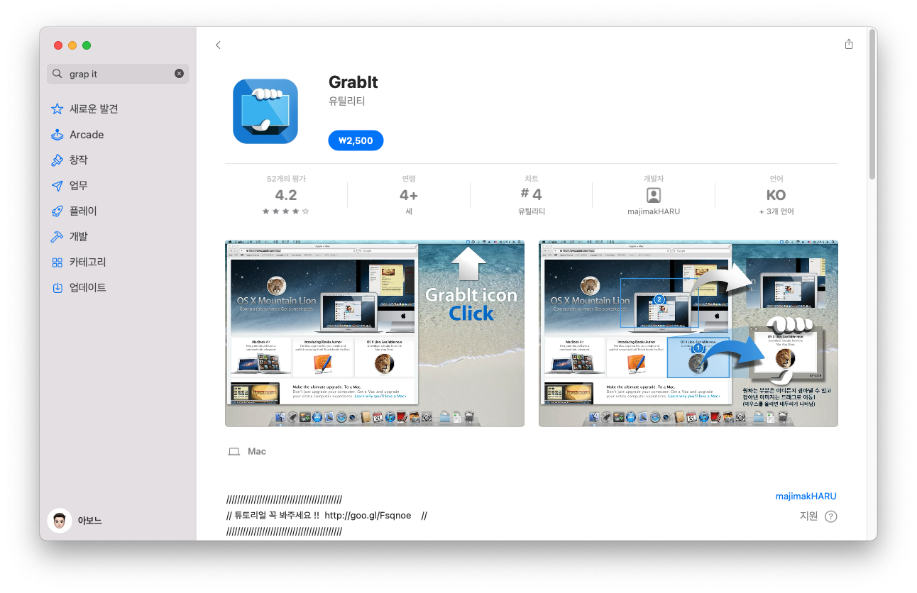 "화면 캡처 앱 중에서 유용한 앱을 소개합니다. 캡처된 화면(스크린샷)이 항상 젤 위에 보이도록 위치되어 멀티 작업시 유용합니다. 유료 앱이면 현재 가격은 2,500원입니다."