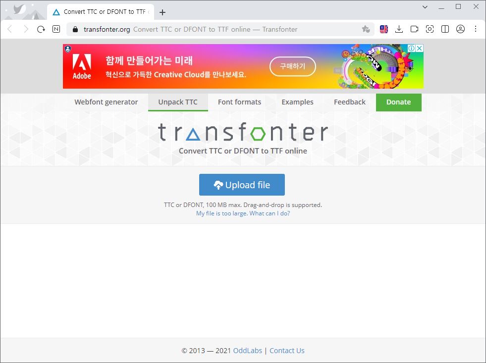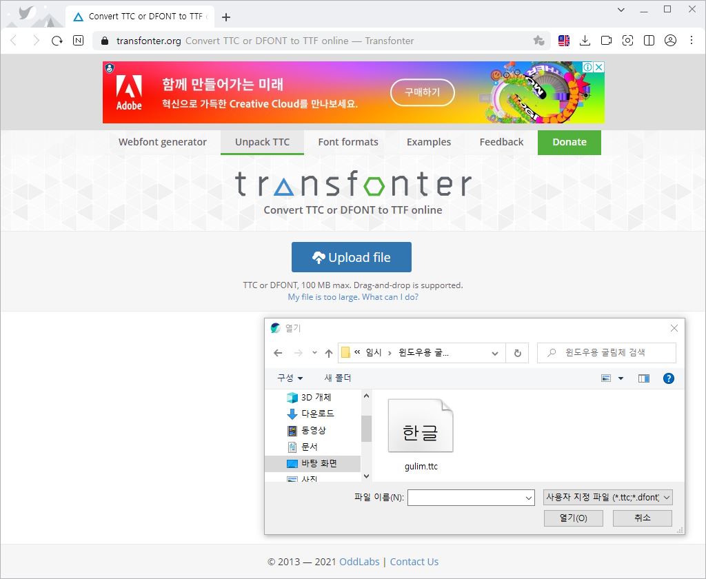 .ttc 폰트를 .ttf 폰트로 전환하기 위해서 아래 사이트로 접속합니다.