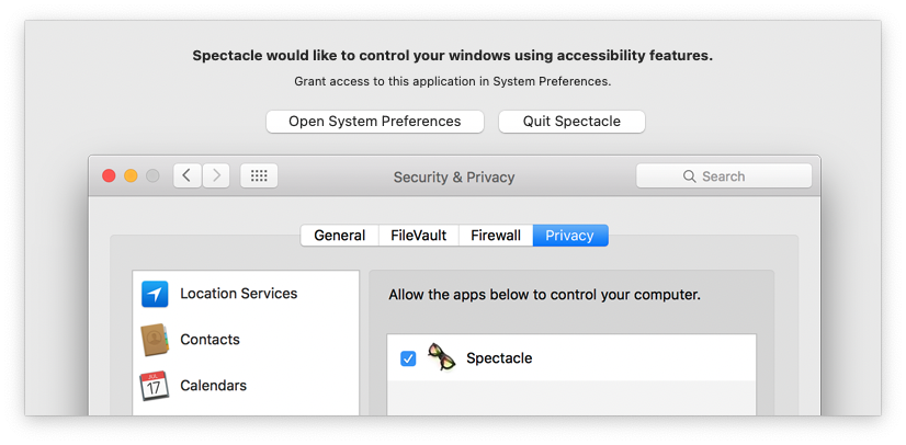 보안 및 개인 정보 보호 > 손쉬운 사용 > Spectacle 체크