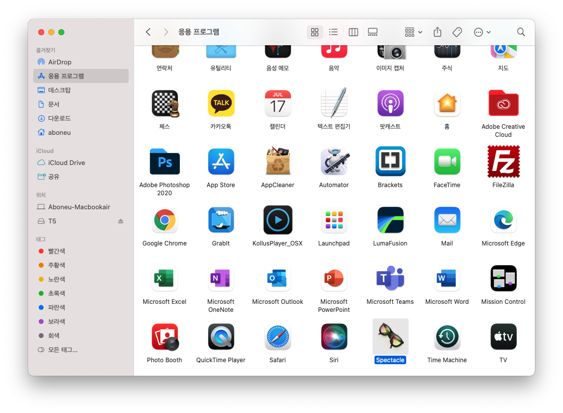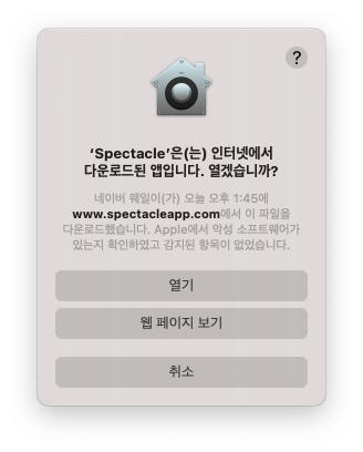 압축 파일을 풀면 바로 'Spectacle' 앱이 보입니다.