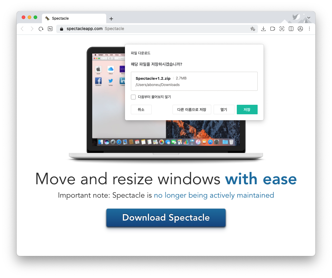 https://spectacleapp.com 사이트에 접속해서 다운로드 받습니다.