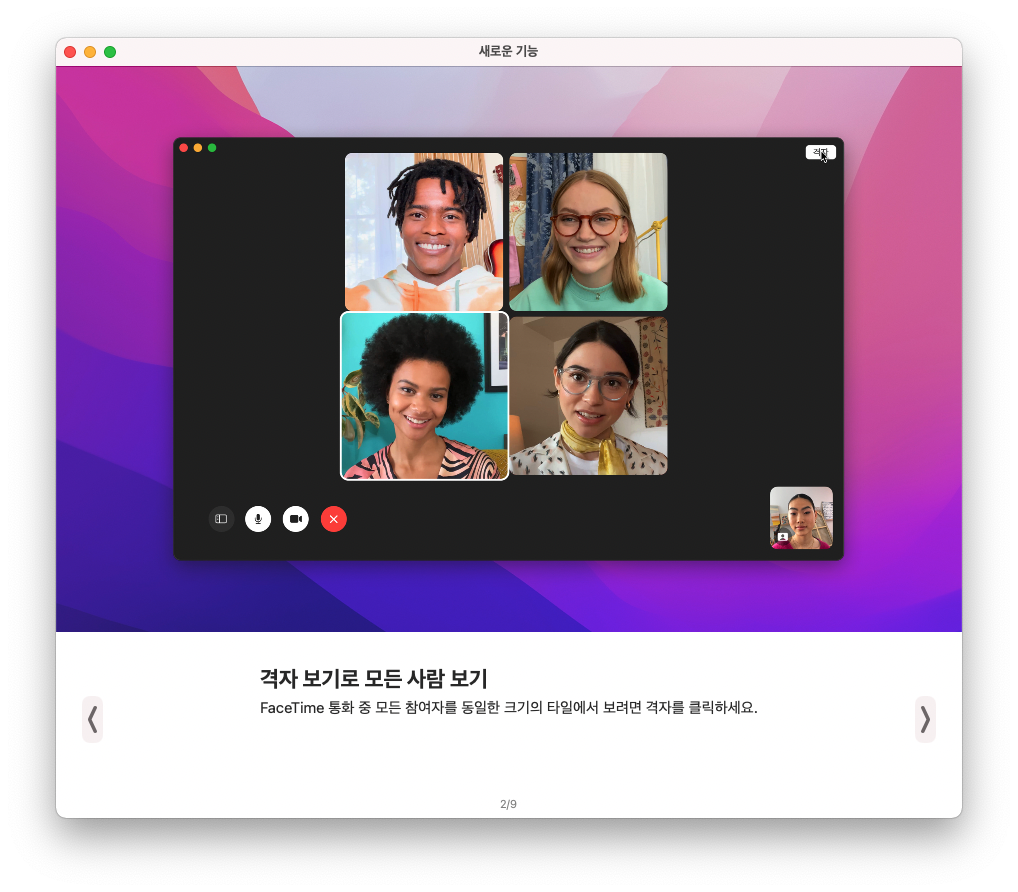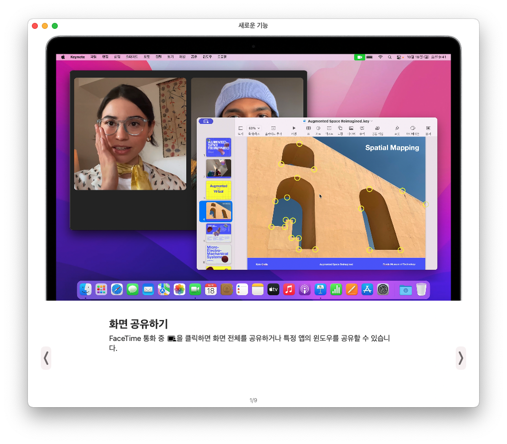 - 화면 공유를 통해 FaceTime 통화 중인 모든 사용자가 사진을 보거나 웹을 탐색하거나 서로 협업할 수 있음