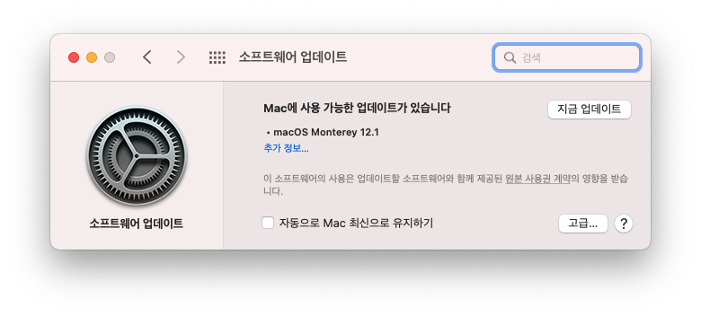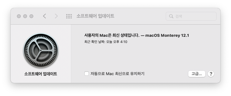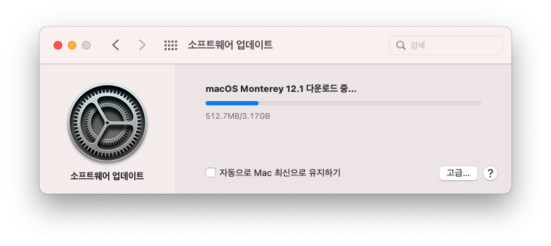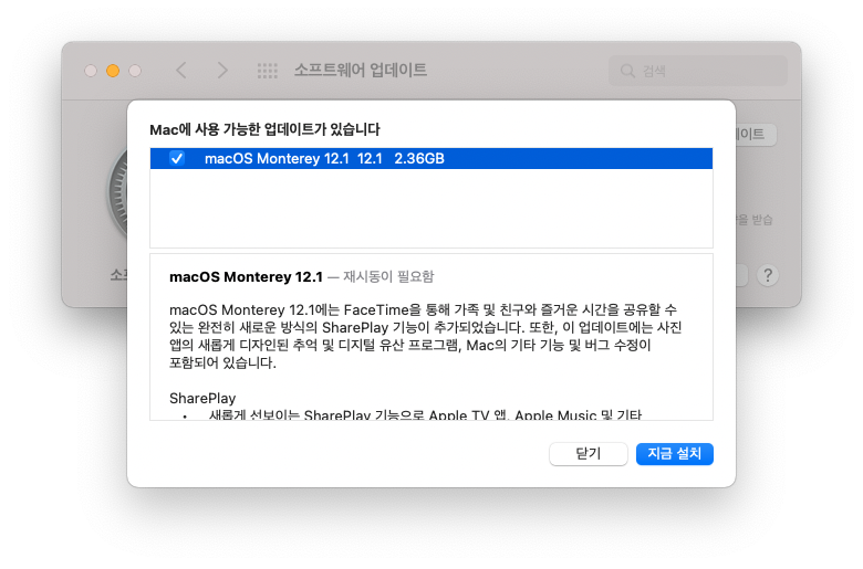 "맥 몬터레이 12.1 소프트웨어 업데이트가 시작되었습니다. 업데이트를 진행하고 어떤 내용이 추가되었는지 확인해보겠습니다."