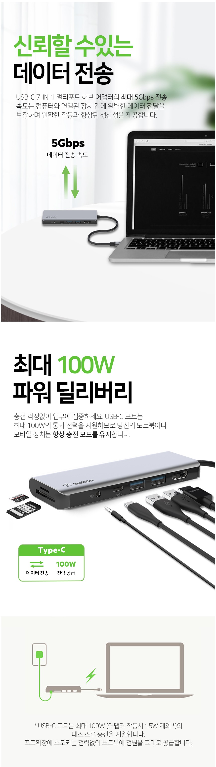 - 최대 100W 파워 딜리버리