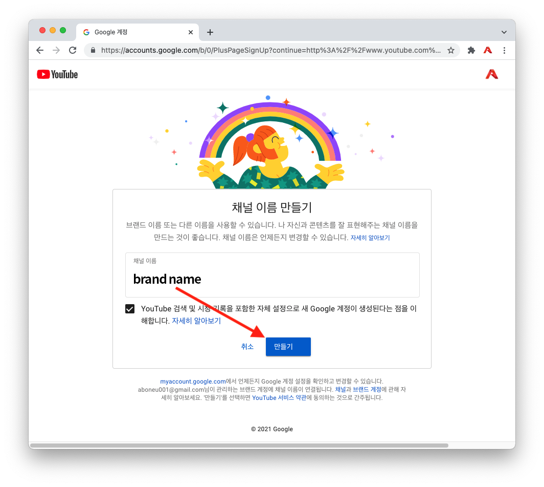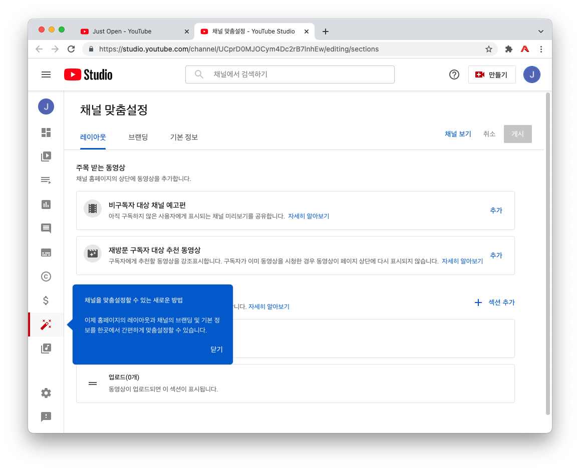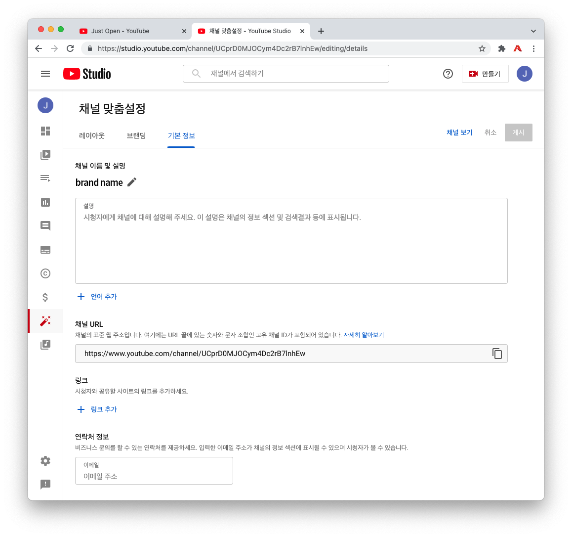 그럼, 새로운 브랜드 채널이 생성 완료됩니다!