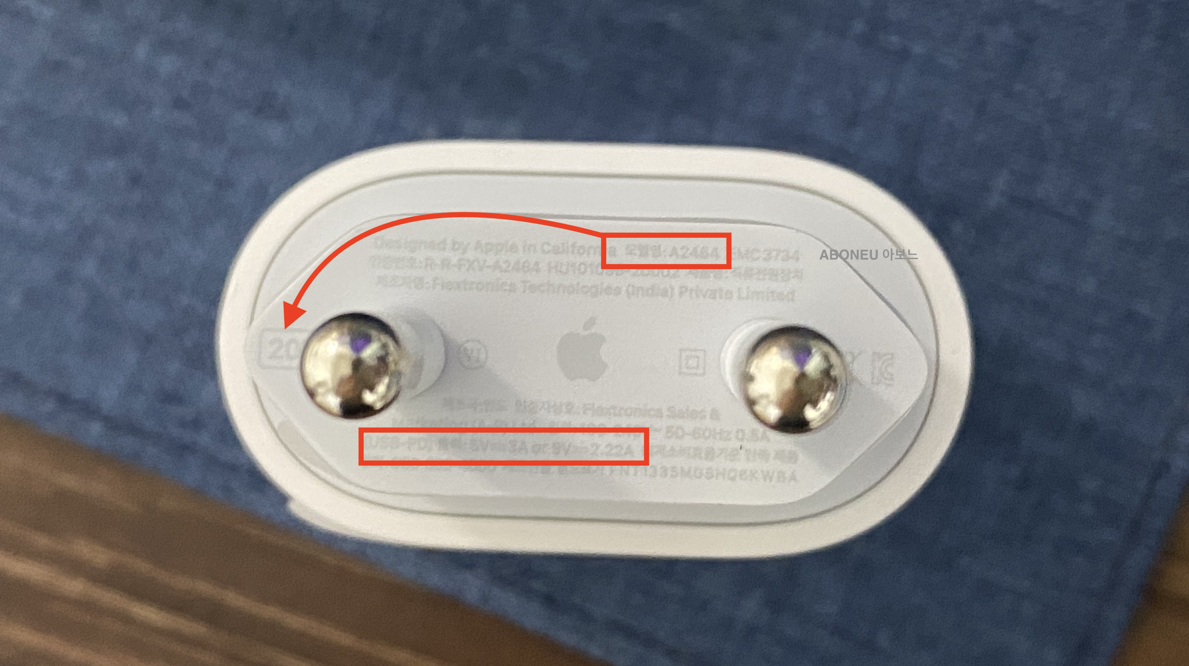 "휴대폰이나 아이패드를 구입하면 박스 내에 전원 어댑터가 포함되어 있습니다. 그런데, 오래 전 구입한 제품엔 모델명이 A1694로 적혀 있고 새로 구입한 제품엔 모델명이 A2464이 적혀 있습니다. 두 개의 출력 전압이 달라서 충전 속도 차이가 있습니다."