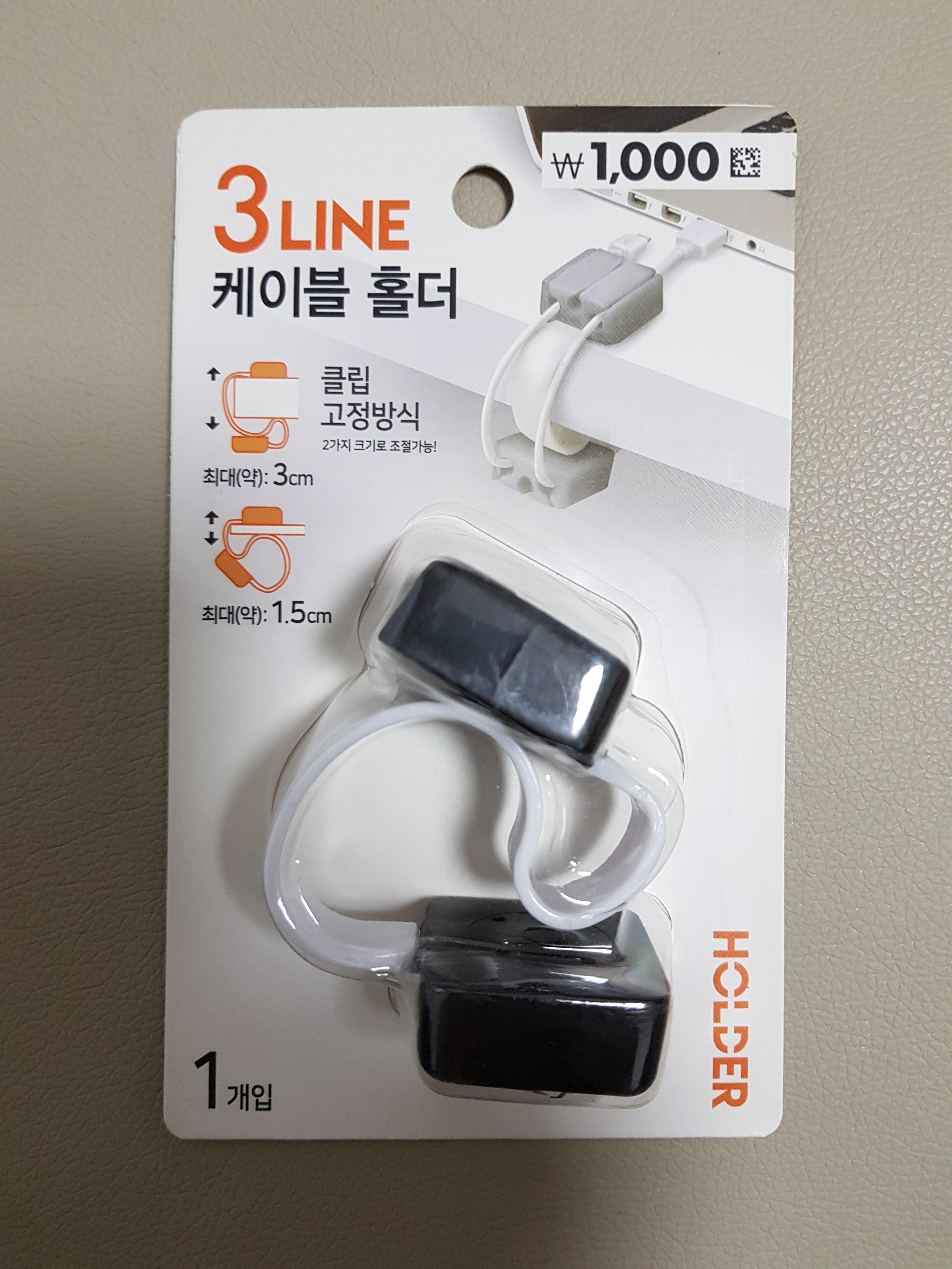 클립 고정 형태의 케이블 전선 정리 홀더입니다. 총 3개의 홀더가 있어 책상 위 선 정리가 쉬워집니다."