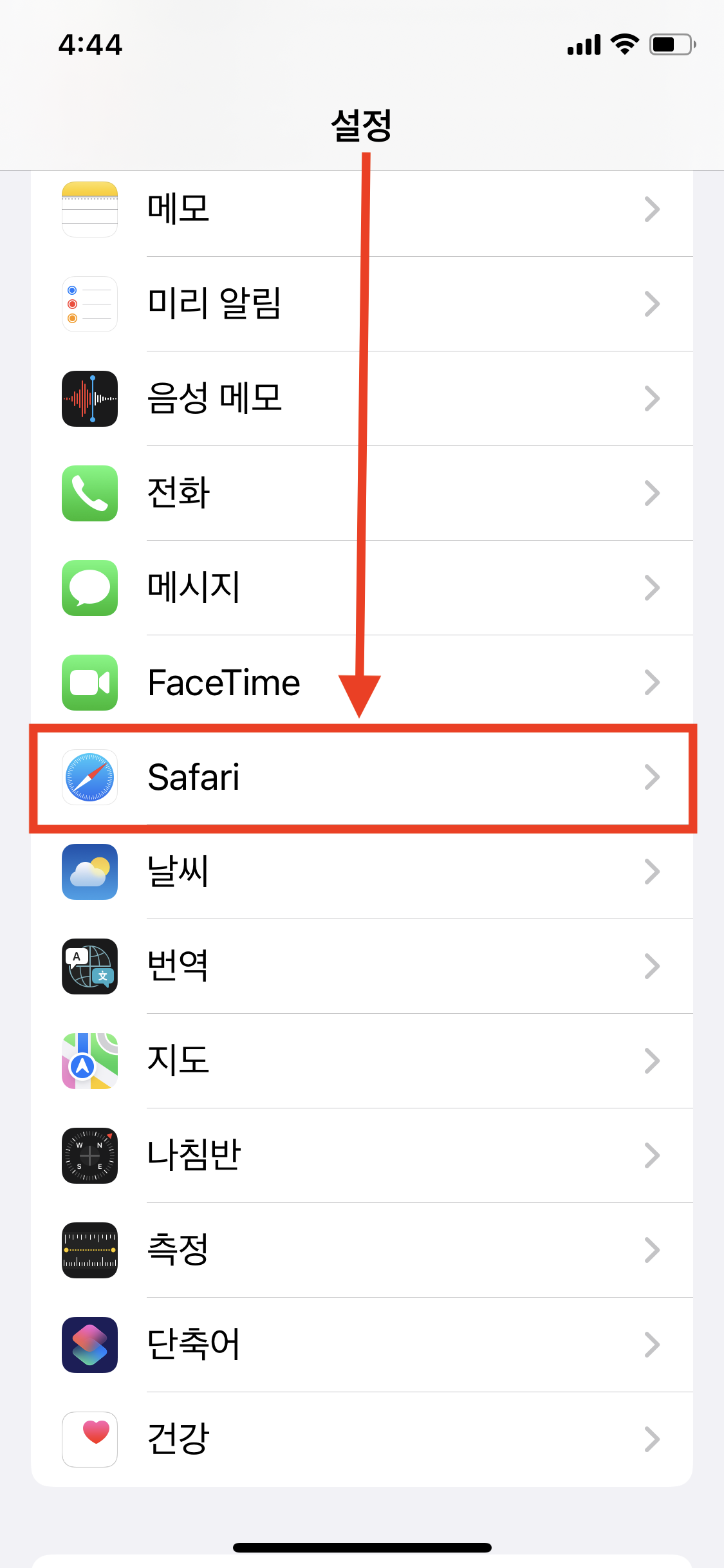 아이폰 > 설정 > 스크롤을 아래로 내려서 > Safari 앱 클릭