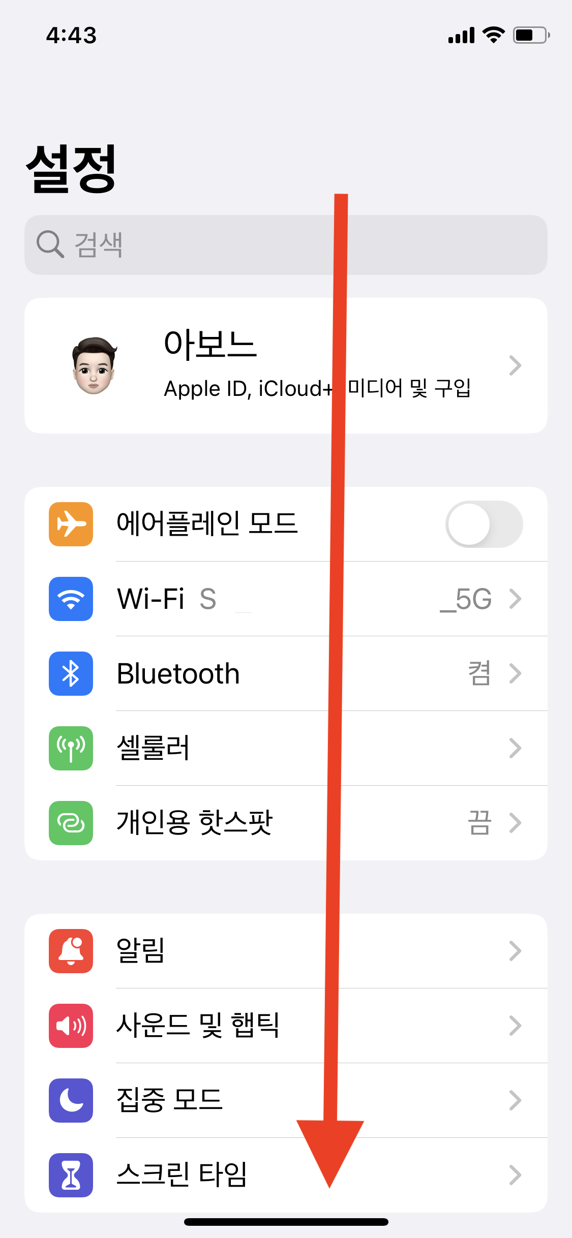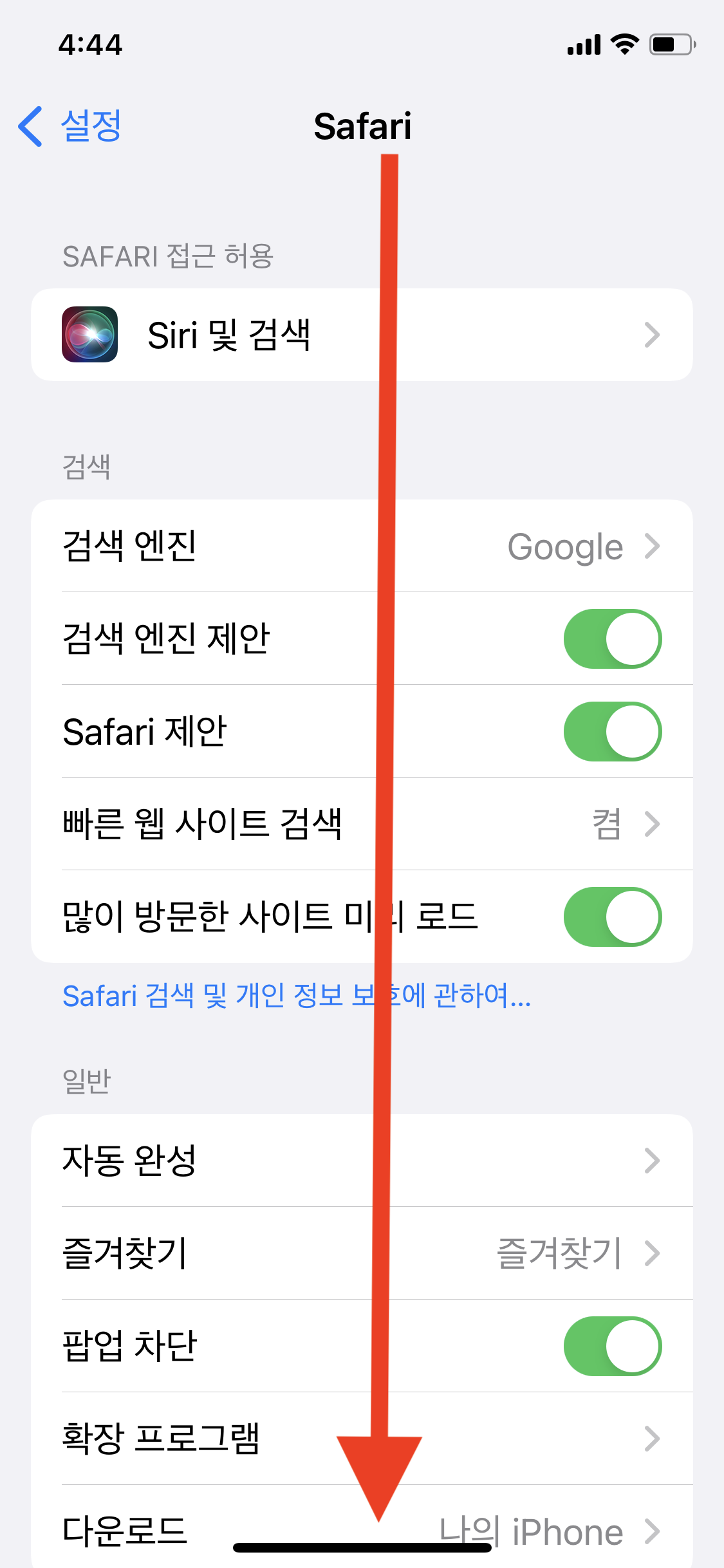 Safari 앱 > 스크롤을 아래로 내림